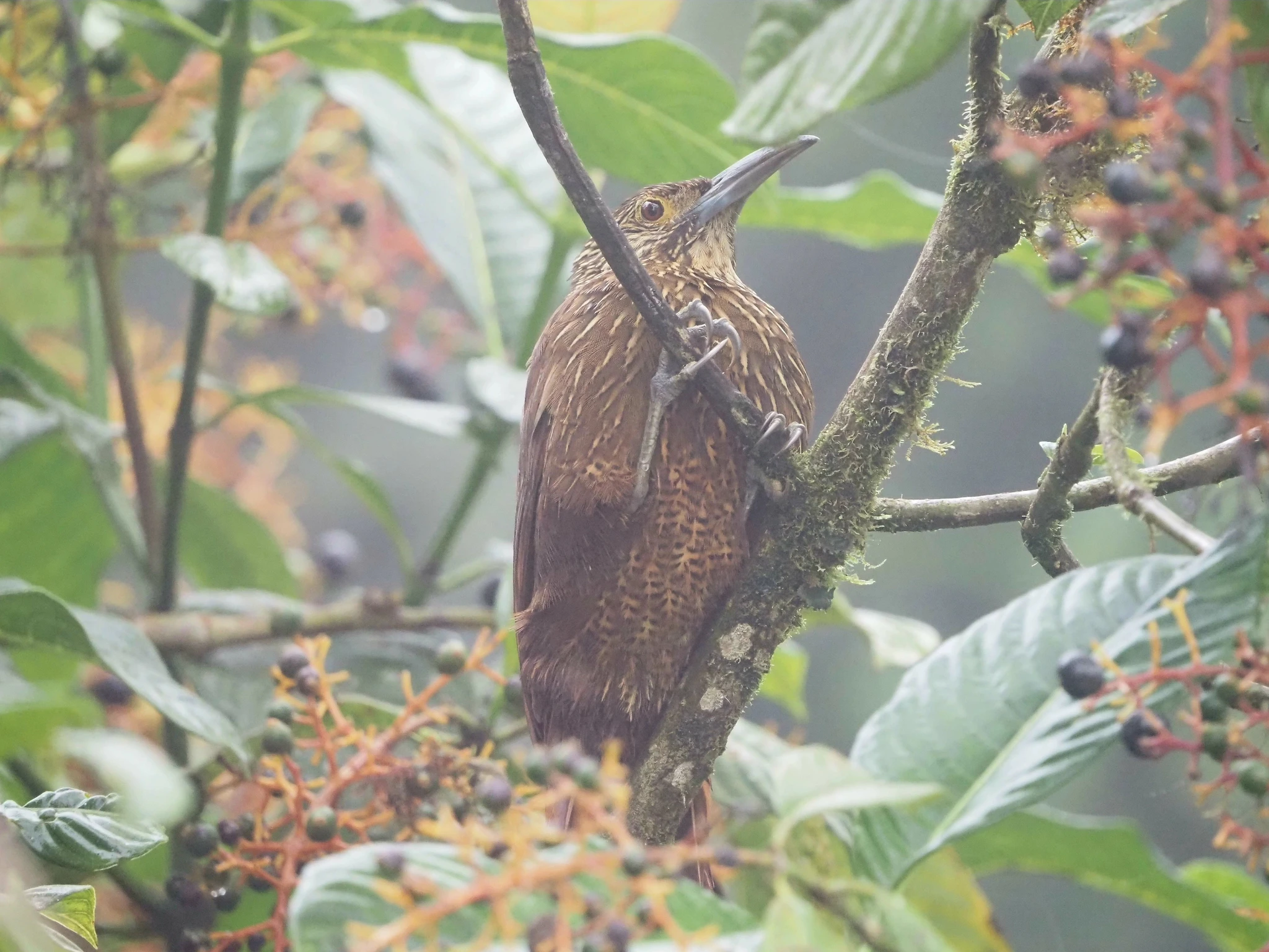 Vaatame algatuseks parkla servas puudel toimuvat sebimist. Minu suureks rõõmuks tegutseb värviliste värvuliste seas üks ronilind. Midagi porrilaadset. Raskemini märgatavad linnud on kuidagi huvitavamad. Neil oleks nagu mingi saladus. See siin on pruunides toonides, kõveriku nokaga ja jalutab pikad varbad harali mööda puutüve, siis rabistab marju süüa.