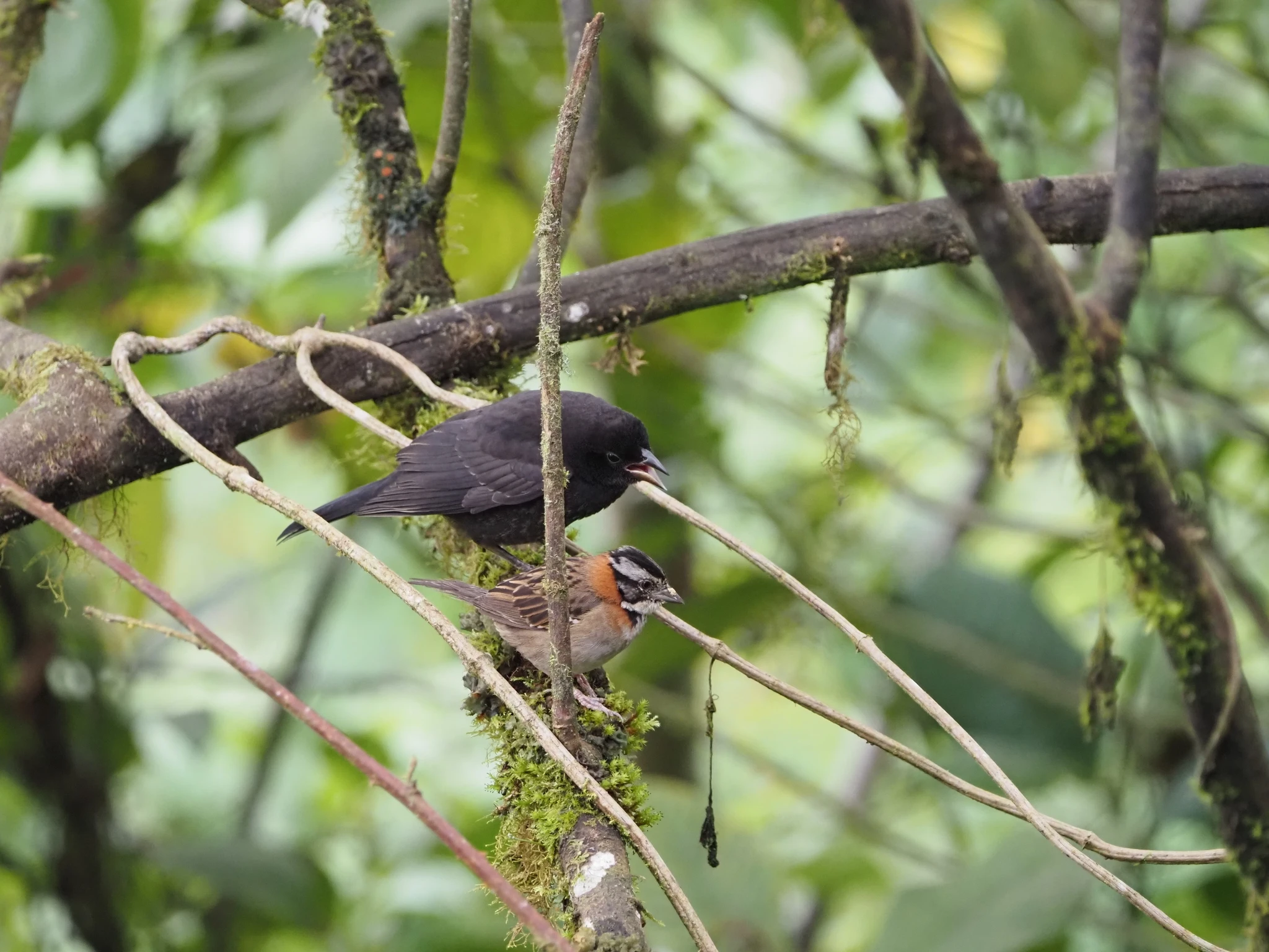 Järgmiseks vaatame banaane söövaid linde. Või noh, mina muidugi kiusakalt vaatan neid, kes parasjagu ei söö banaani. Õigupoolest ootame, et vanem meesterahvas kusagil eemal leiaks mingi erilise linnu, et siis kõik koos teda vaatama tõtata. Lind ei anna end kätte. Meiega liitunud noored inimesed vadistavad entusiastlikult ja vahetpidamata. Andy rullib telefonis. Kõik on rahul. Väljaarvatud võibolla kena väike varblane Zonotrichia capensis, kes ei suuda ära imestada, kuidas ta on välja haudunud endast kaks korda suurema läik-nugiturpiali, kes muudkui süüa juurde mangub.