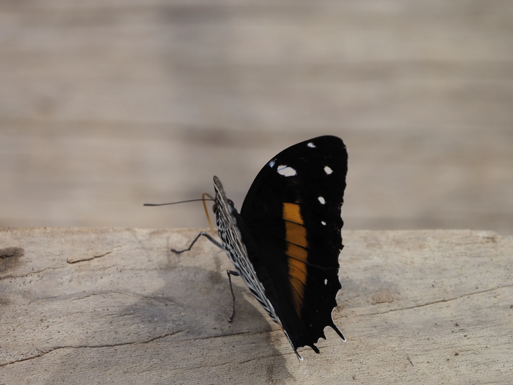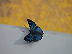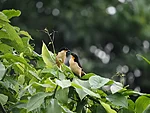 Kuni lõunani pildistan hüti taga käblikut ja silla juures liblikaid. Käblik on väga meie käbliku moodi, isegi laul on sarnane. See siin on aga aedkäblik. Liblikad, kes metsas alati väga kaugele maanduvad, otsustavad nüüd mu püksisäärel peatuda. Aga seekord on mul teleobjektiiv ja see ei fokusseeri nii lähedale. Tagatipuks saab kaamera aku tühjaks. Viin pükste küljes tolkneva liblika Kallele näha, kes telefoniga pildi ära teeb.