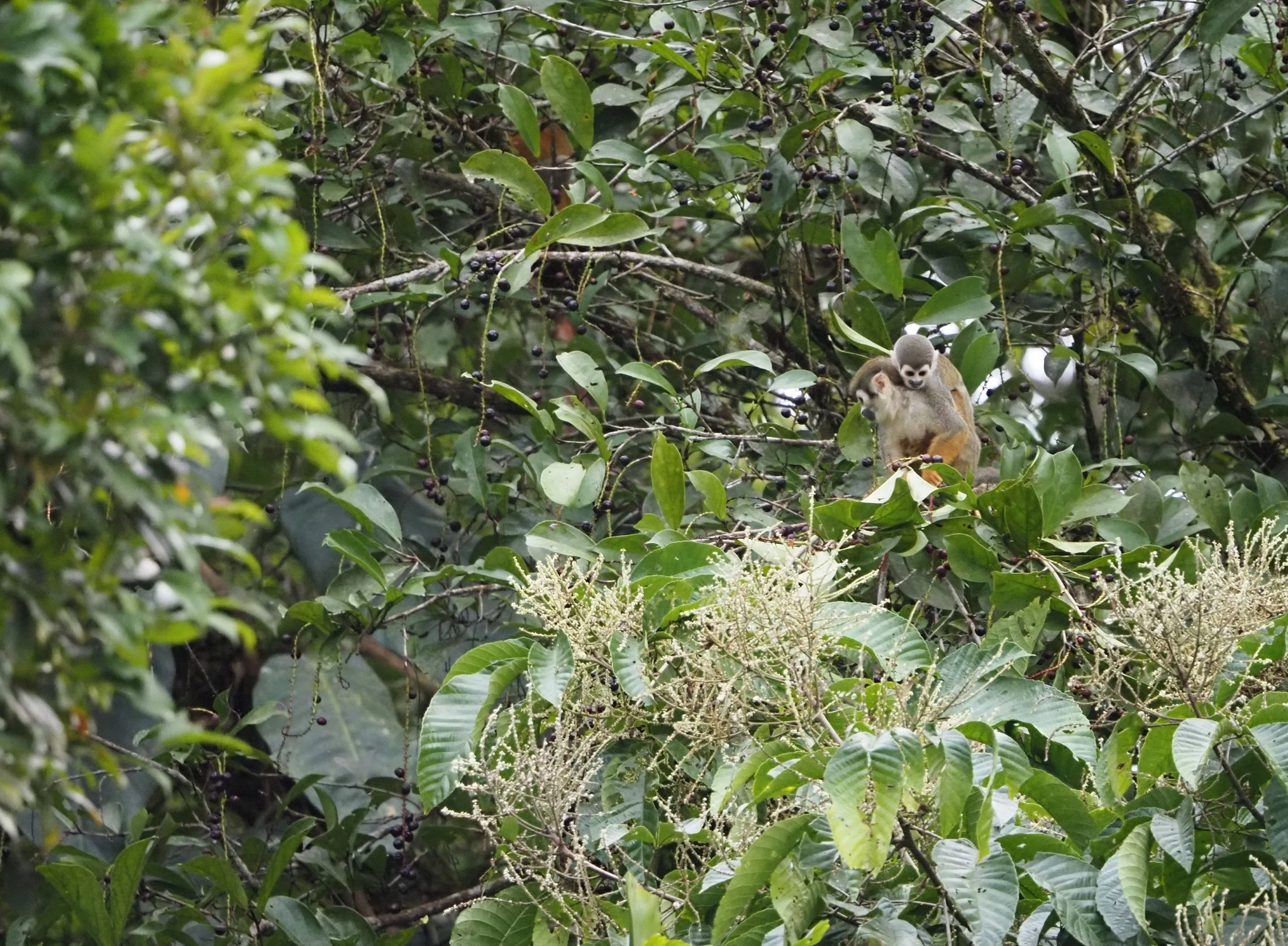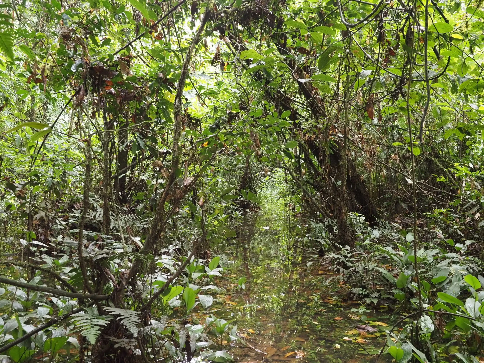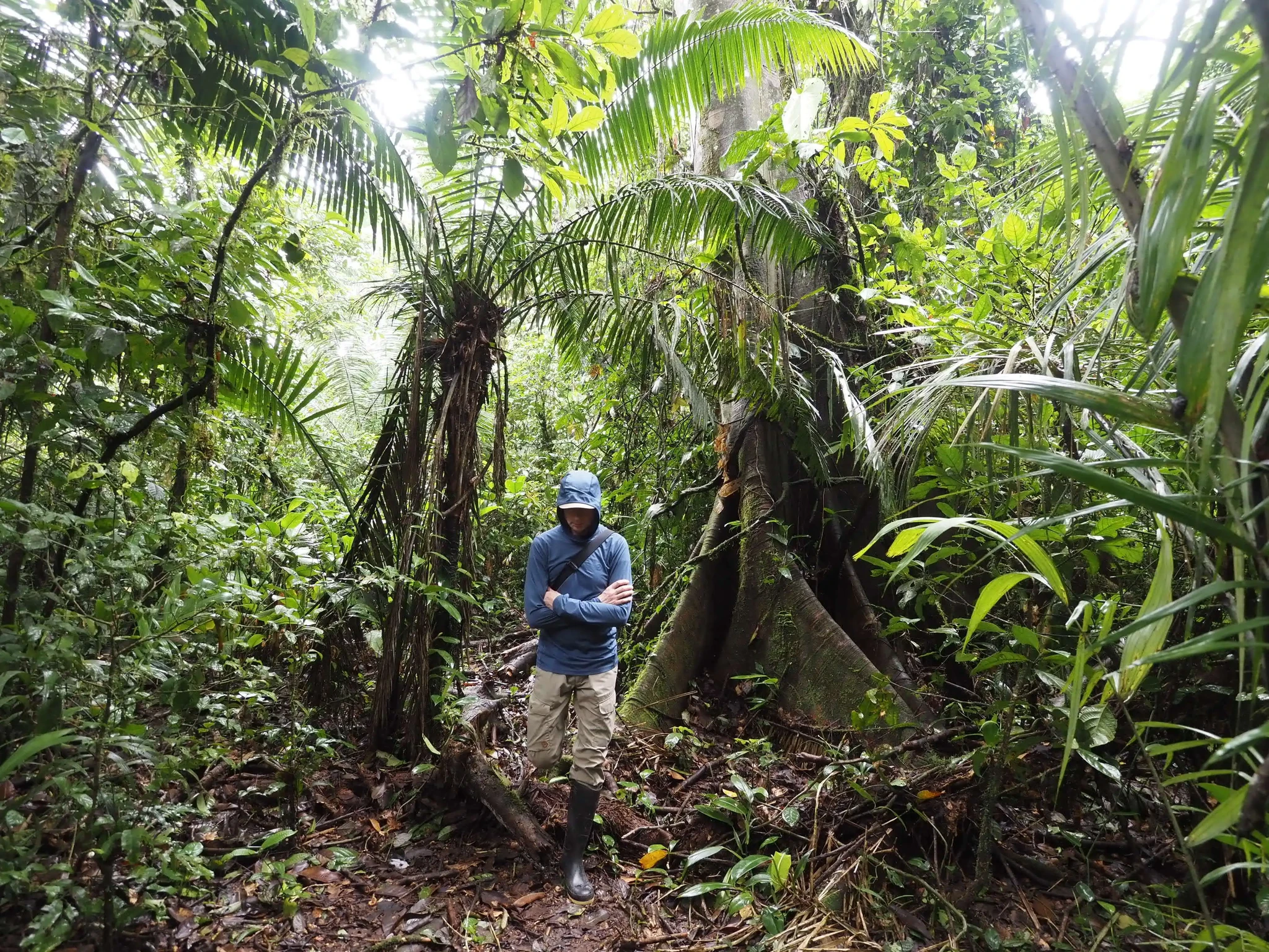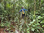 Mõned meetrid paadisõitu, et saada üle kohe laagri kõrval Tiputinisse suubuva kitsa lisajõe. Et kaasa tuleb suur matšeete, tekitab teatud ootusi. Mets tilgub ja on suhteliselt vaikne. Kui kõik need tsikaadid ja muud putukad välja arvata. On lootust näha laiskloomi, aga neid me lõpuks ikka ei näe. Selle asemel näeme sajajalgseid, kellest kaks tukuvad rajal, üks otsib midagi lehtede vahelt ja võtab poose. Kuuleme põgenevat kitse. Maas on taapirijälgi. Meelitame linde ja näemegi pika piilumise peale kedagi sipelgalindudest ja kedagi tanageridest. Habe-tantsulind näole ei anna, aga pontsakad läik-pugalkohod on kõrgustes näha küll. Mööda põrisev mesilane osutub pisikeseks koolibriks. Lehelõikaja-sipelgatel on puhkepäev ja lehti ei tassita. Need sipelgad läksid küttimiselt ja koriluselt põllumajandusele üle ammu enne inimest. Vilistades möödub orav-pärdikute kamp.