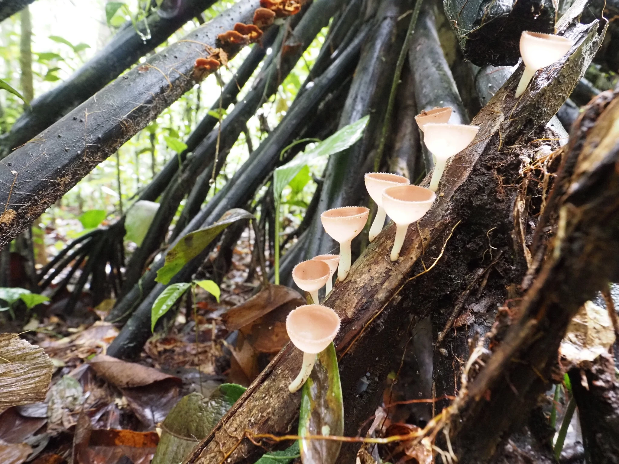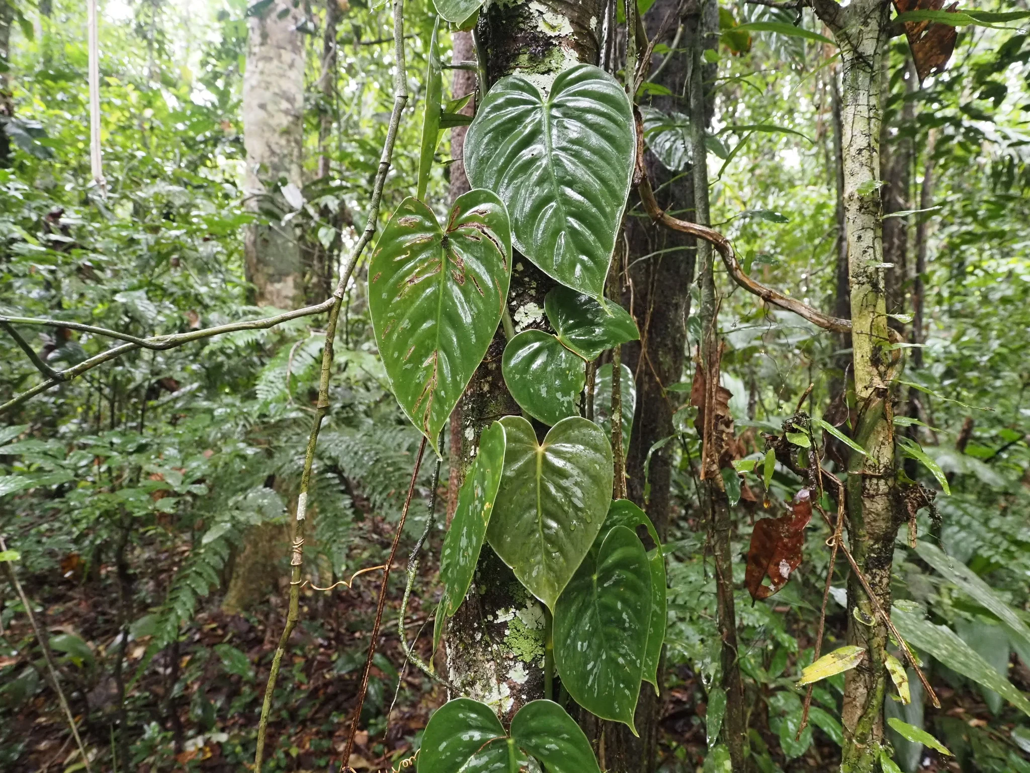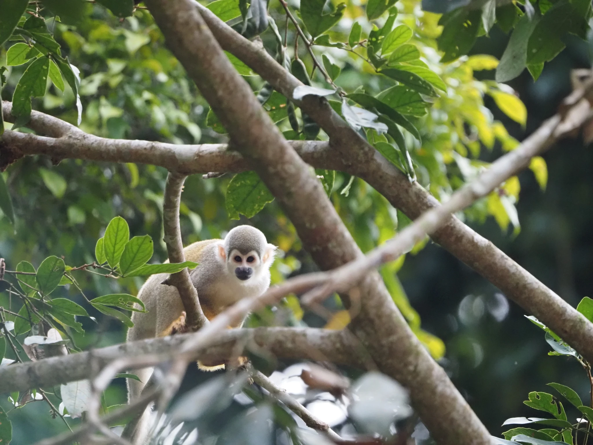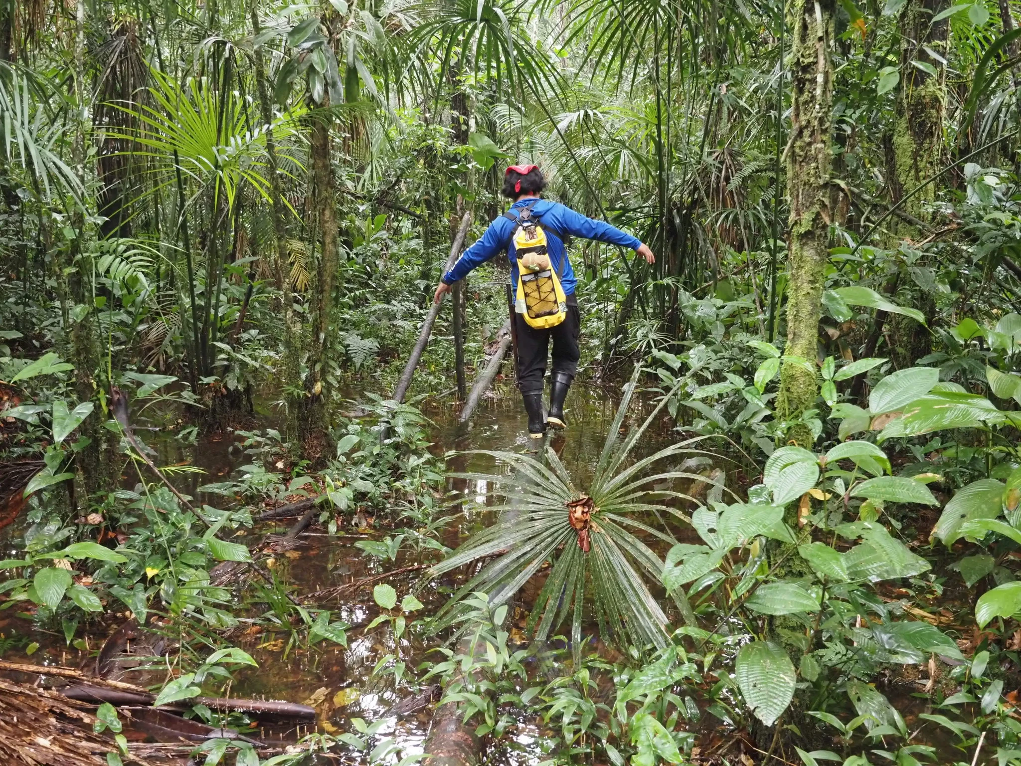 Mõned meetrid paadisõitu, et saada üle kohe laagri kõrval Tiputinisse suubuva kitsa lisajõe. Et kaasa tuleb suur matšeete, tekitab teatud ootusi. Mets tilgub ja on suhteliselt vaikne. Kui kõik need tsikaadid ja muud putukad välja arvata. On lootust näha laiskloomi, aga neid me lõpuks ikka ei näe. Selle asemel näeme sajajalgseid, kellest kaks tukuvad rajal, üks otsib midagi lehtede vahelt ja võtab poose. Kuuleme põgenevat kitse. Maas on taapirijälgi. Meelitame linde ja näemegi pika piilumise peale kedagi sipelgalindudest ja kedagi tanageridest. Habe-tantsulind näole ei anna, aga pontsakad läik-pugalkohod on kõrgustes näha küll. Mööda põrisev mesilane osutub pisikeseks koolibriks. Lehelõikaja-sipelgatel on puhkepäev ja lehti ei tassita. Need sipelgad läksid küttimiselt ja koriluselt põllumajandusele üle ammu enne inimest. Vilistades möödub orav-pärdikute kamp.