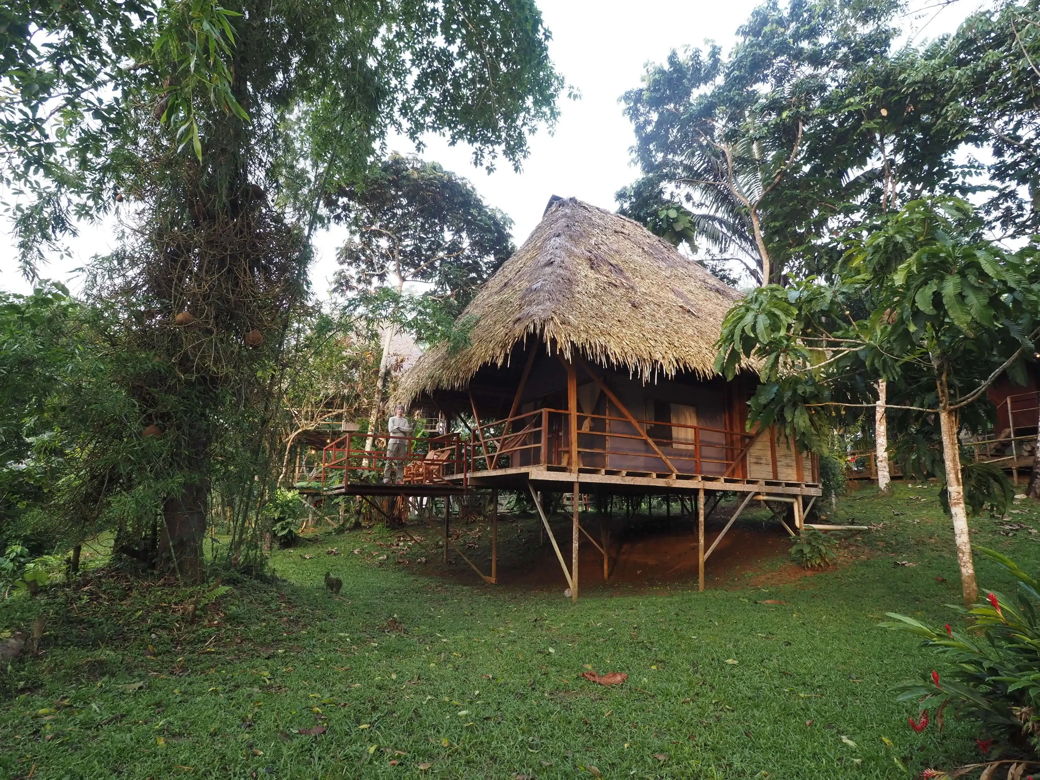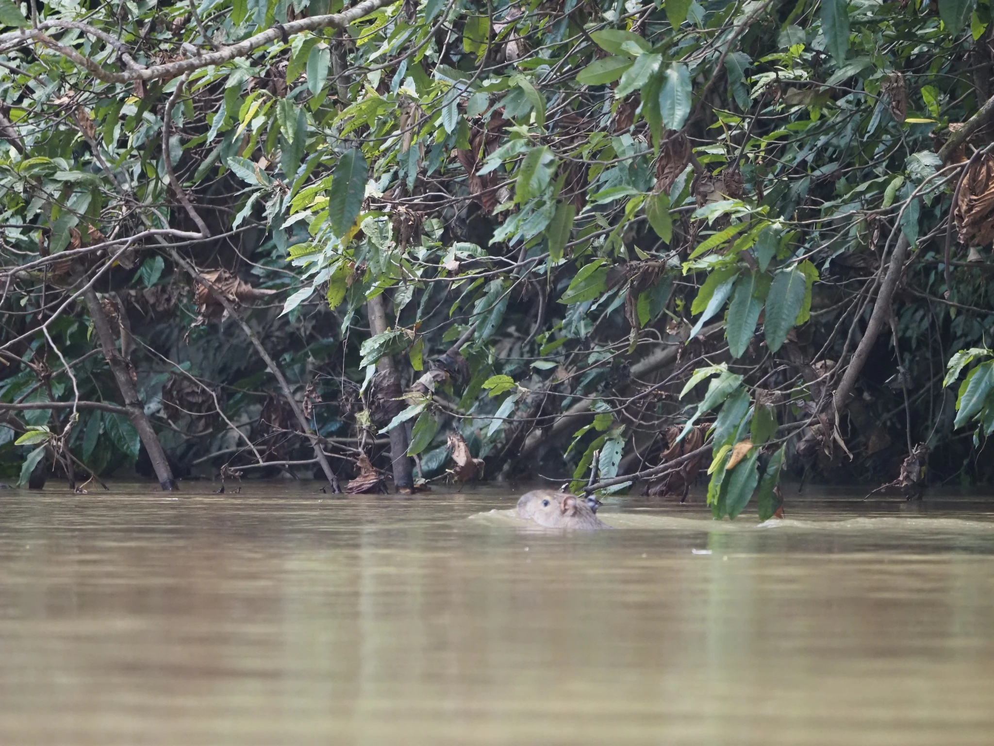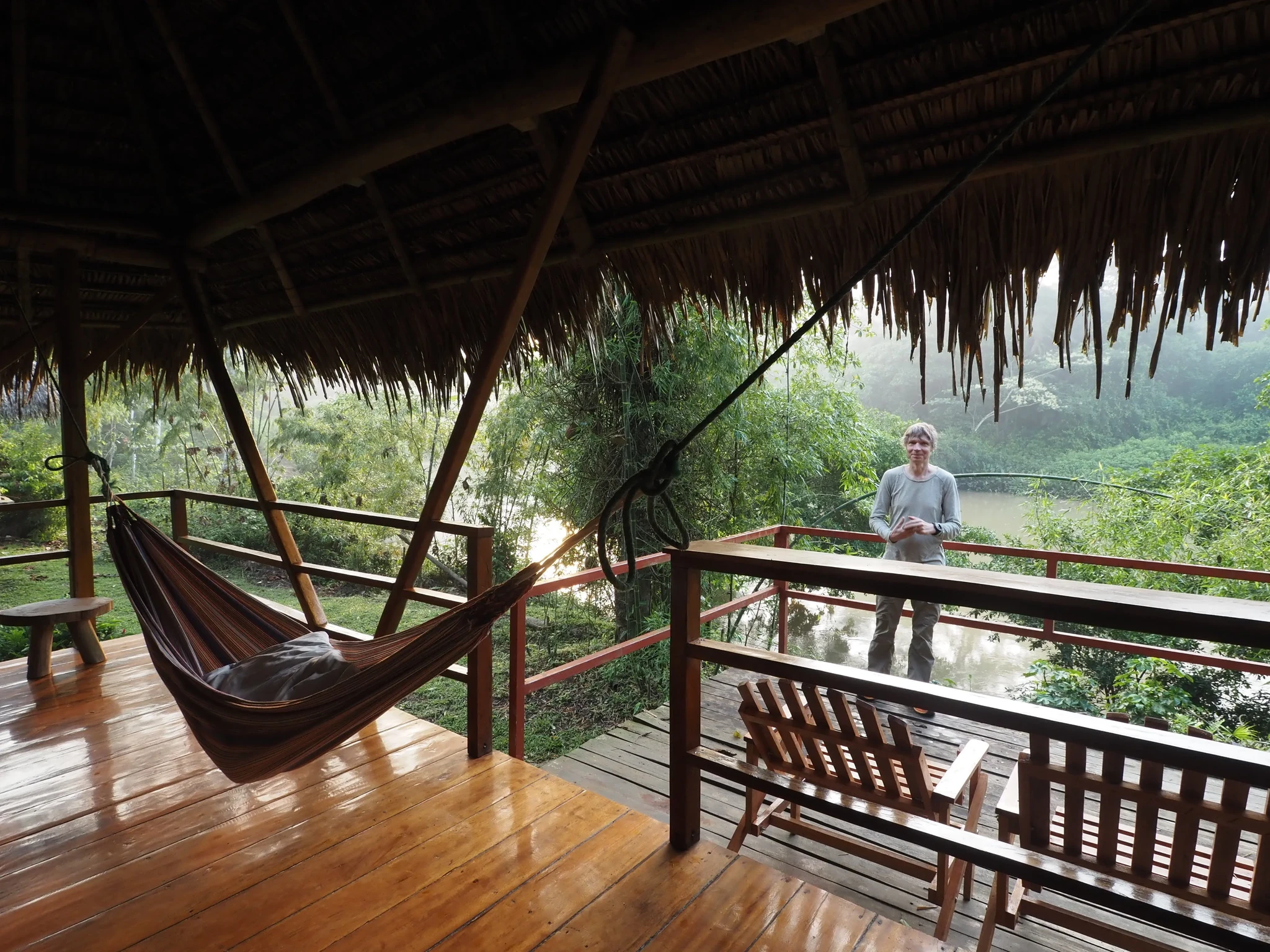 Maabume ja tassime kanuu jõe äärde tagasi. Saame moosisaia ja õuna. Kallele oli jäänud mulje, et minnakse laagrisse tagasi, mina olin aru saanud, et kolime mootorpaati ja libiseme edasi allavoolu. Mida aga pole, on paat. Võtame sisse samad kohad ja sõuame oma kipaka sõiduvahendiga jõele. No see pole mingi Lemmjõgi. Enamus aega laseme voolul end kanda. Mets kahel pool vilistab ja kriiskab ja on iga käänaku taga uus. Suhteliselt uus. Donakoobiuste puhmad näiteks on juba tuttavad. Libiseb igatahes aeglaselt üle vaatevälja. Mõne hetke saadab meid delfiin. Lehed kukuvad aeg-ajalt plärtsuga vette. Need ei sahise, vaid klõbisevad. Meditatiivne kulgemine. Esialgu.