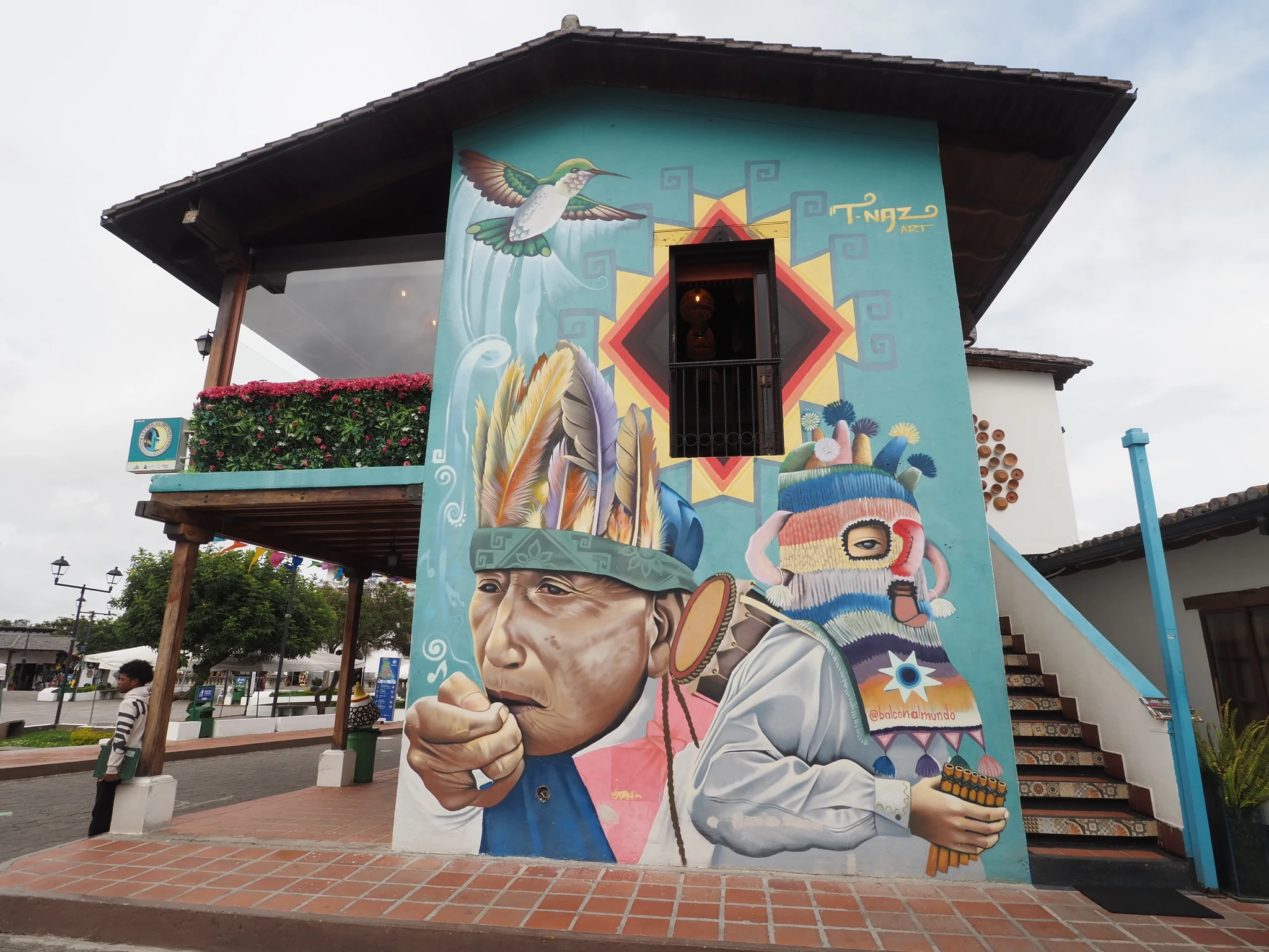 Monument on aiaga piiratud pargis, kuhu pääsemine maksab röögatud 5 dollarit ja eeldab terve nimekirja jagu andmete avaldamist. Pargis on nänni müüv linnak, õllemuuseum, planetaarium ja igasugu muid asutusi. Saame teada, et koroonapandeemia ajal väljus Ecuador rahvusvahelisest postisüsteemist ega ole sinna naasnud. Postkaardid, mis meil õnnestus suure vaevaga leida, jäävad seetõttu ostmata. Joome hoopis õlut ja kohvi. Muu väljapanek on pigem nooremale ja keskmisele koolieale.