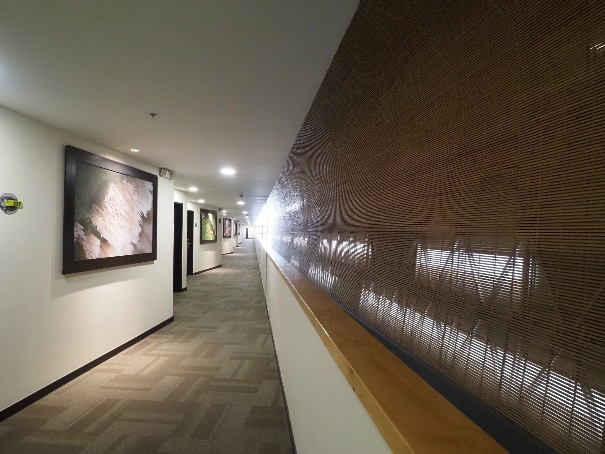 Hotelli personal naeratab kramplikult. Neil pole ilmselt lubatud enne tööpäeva lõppu suunurki alla lasta. Hotell on linnuvaatluse hinna sees, igale külastajale on ette nähtud üks kaheinimesevoodi. Üldse on kõik hiiglaslik ja vannitoas on lausa kaks konksu. Muidu on neil konksudega tõsine probleem. Anname pesta sületäie musta pesu.