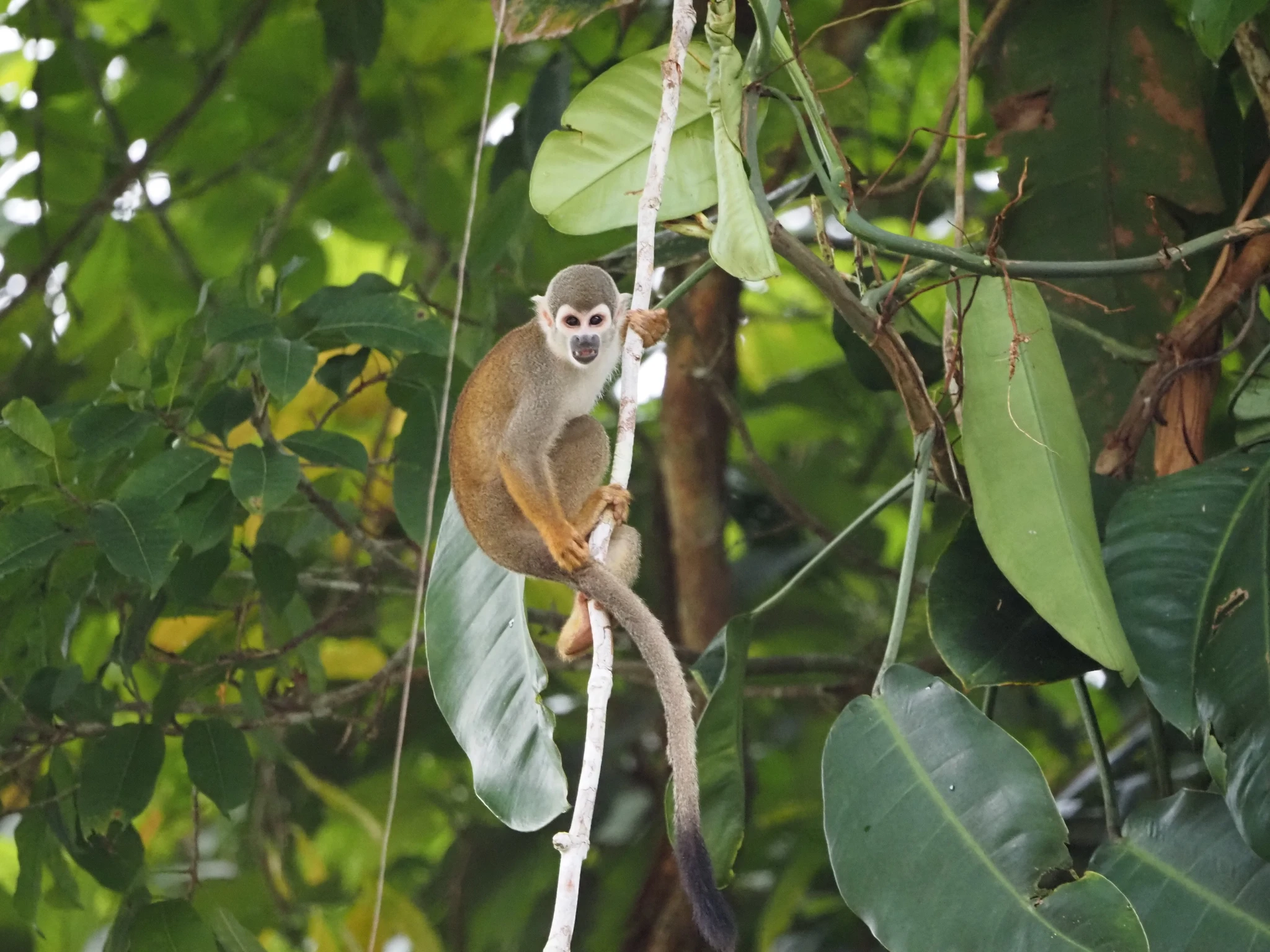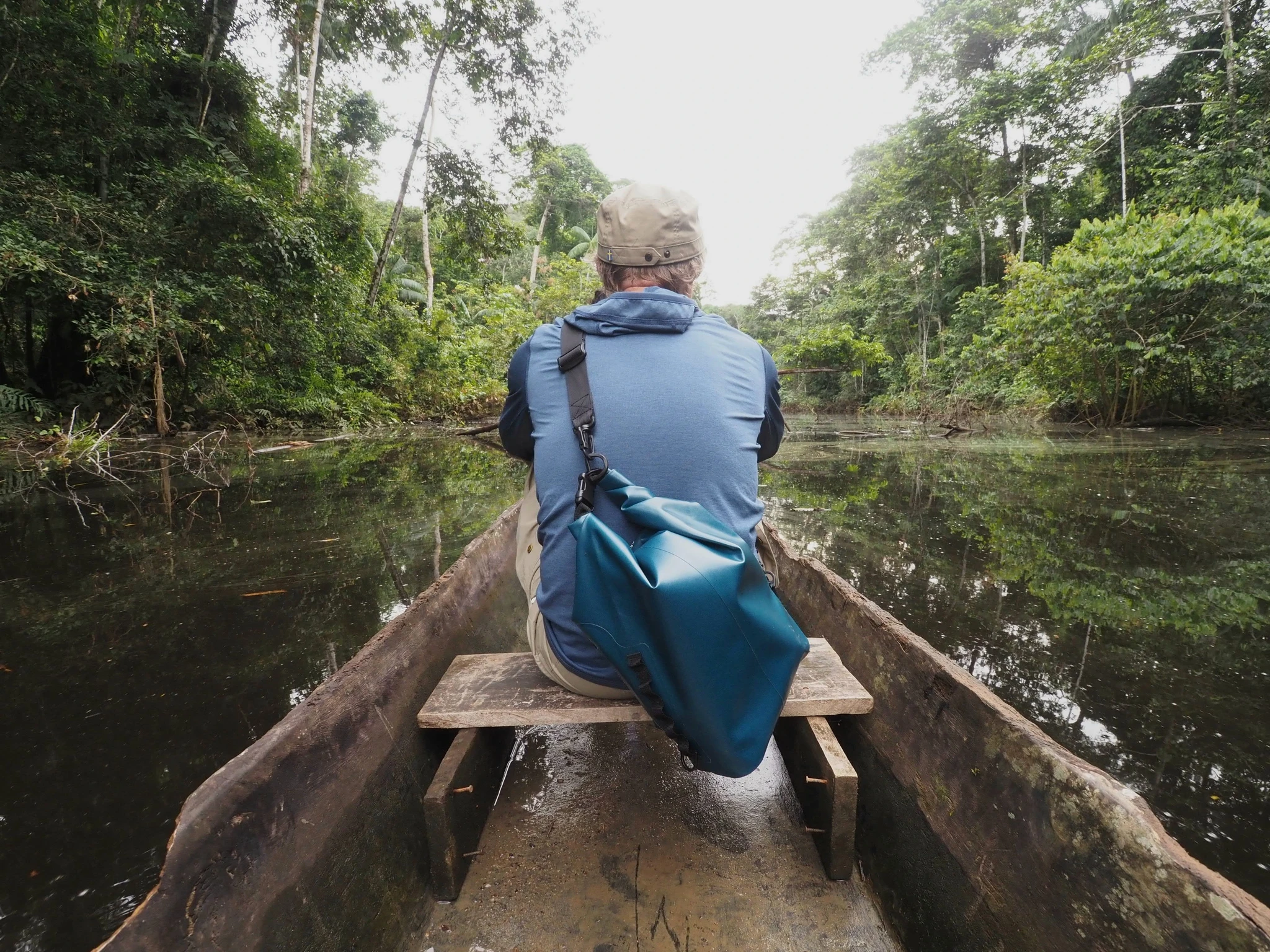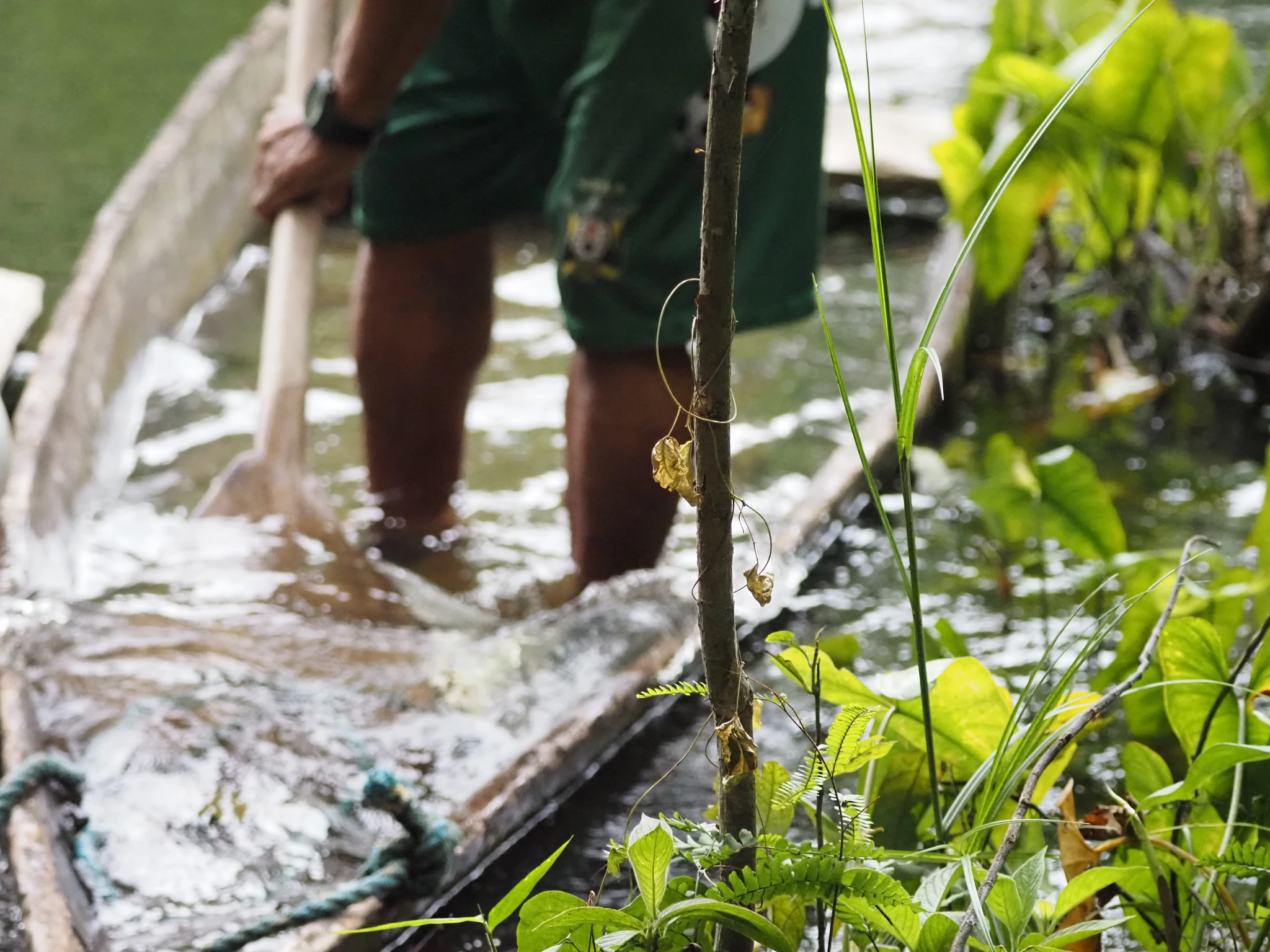 Õhtul libiseme mööda väikest laguuni puust kanuuga, mis esiti küll pigem vanni meenutab. Selles mõttes, et kõik vesi ei ole väljas. Laguun on tume ja vesi liikumatu ning peegeldab vaguralt kaldataimi. Edasi-tagasi sähvivad kogud on nahkhiired. Maanduvad murdunud puu tüvele ja kaovad. Läheb tükk aega enne kui aru saan, et laigud tüvel ongi nahkhiired. Kaldalt kostev seakisa kuulub hoatsiinidele, dinosauruselaadsetele lindudele, kellel tiiva küljes küünis. Kaimaneid ega anakondat pole näha.
