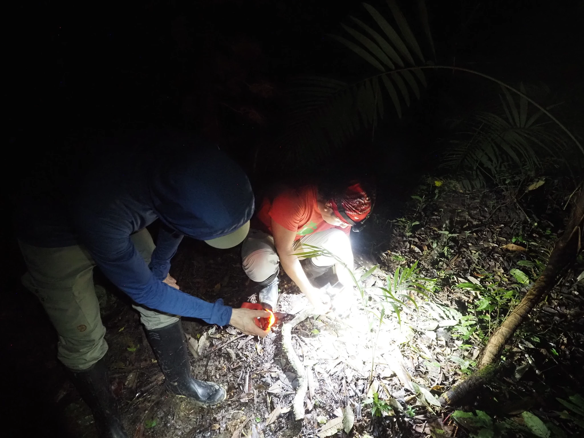 Päeva lõpetuseks on ette nähtud jalutuskäik pimedas metsas. Veidi kõhe on teadmatus, kuidas pimedas kuulsipelgate eest põigelda. Kõigepealt on konn kõrgel puu otsas. Teatame Ramirole, et meie konnad ei roni kunagi puu otsa. Pärast on kellegi silmad kõrgustes. Mingit sorti karu. Igasugu satikad on tulnud lehtede peale, eelkõige ämblikud ja rohutirtsud, aga ka kepp-putukad (stick insect, Phasmatodea) ja üks palvetajaritsikas. Lõpuks polegi väga hirmus, aga hea on ikkagi õue peale tagasi jõuda.